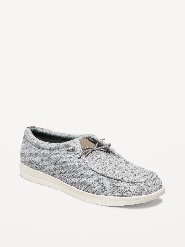 Textured Knit Loafers: decorative lace front, soft-knit upper, contrasting synthetic midsole, textured outsole, easy slip-on style, #684902