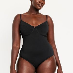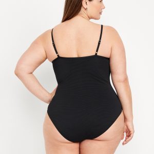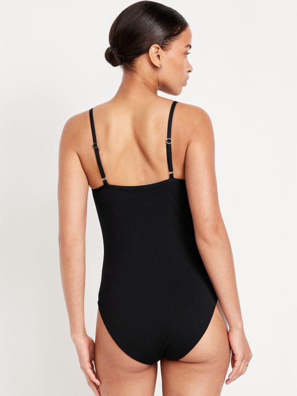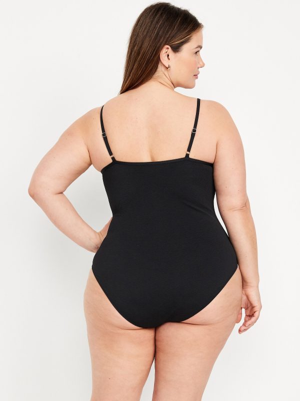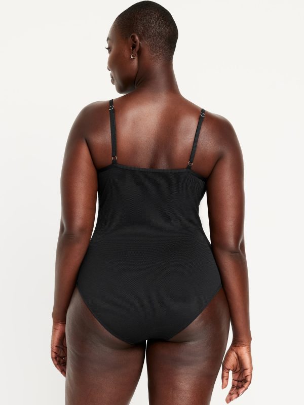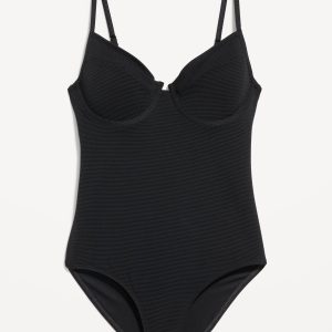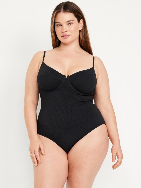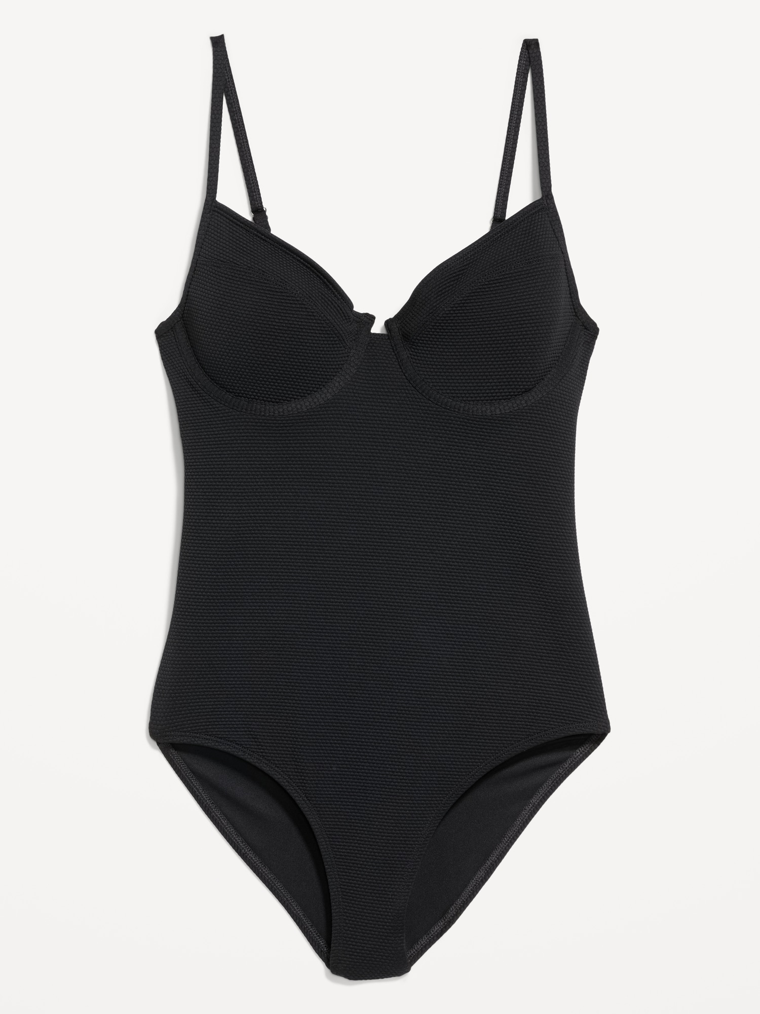 Textured One-Piece Balconette Swimsuit: adjustable straps, underwire support, removable pads, elastic leg openings, #680782