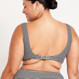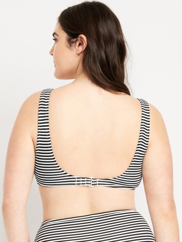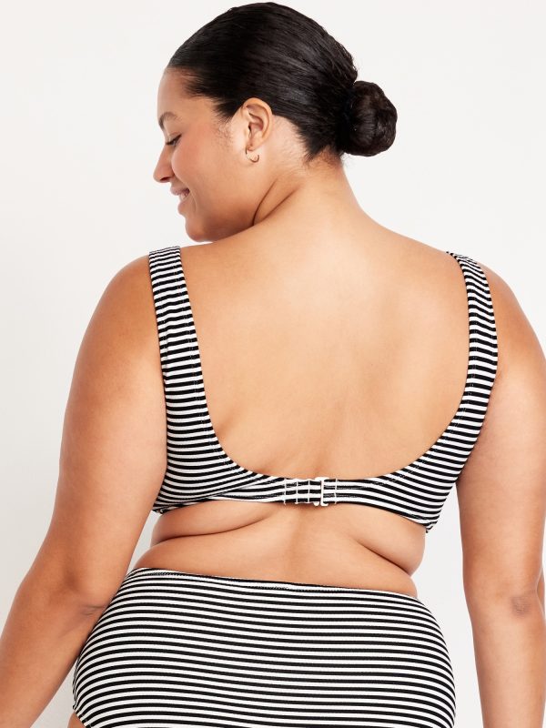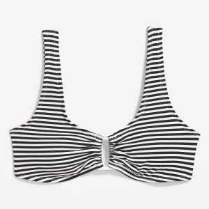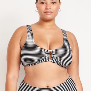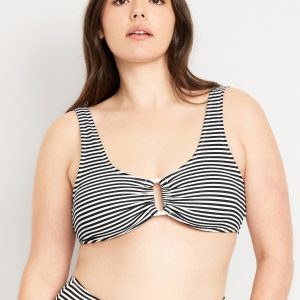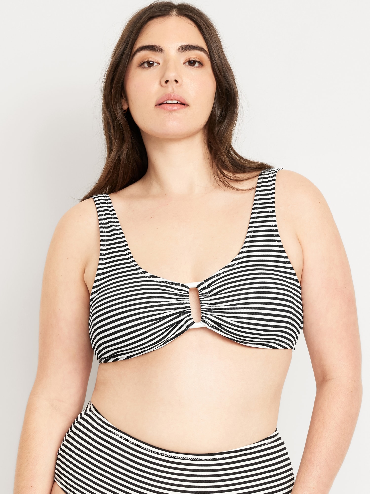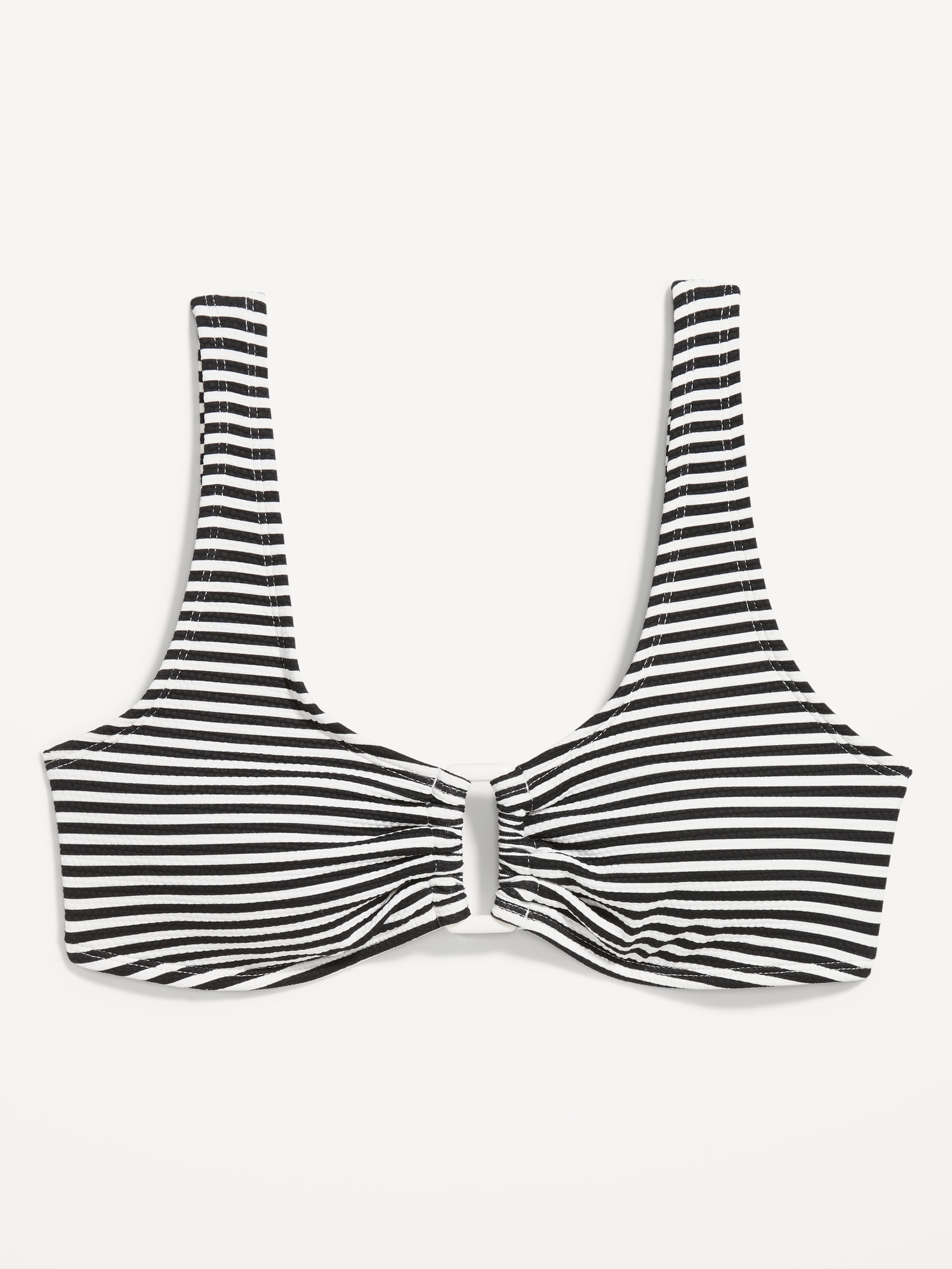 Textured Swim Top: scoop neck, wide straps, ruched front with o-ring accent, removable cups, hook-and-eye clasp at back, #660878