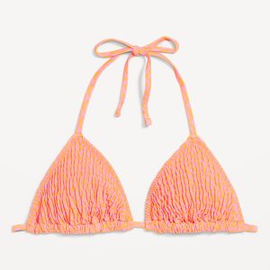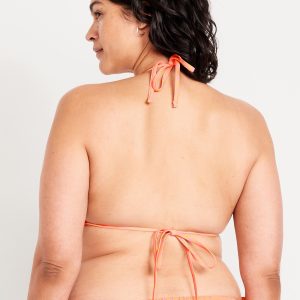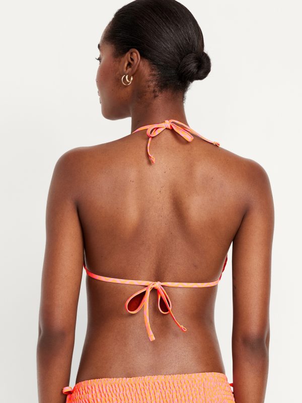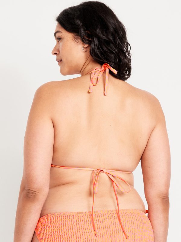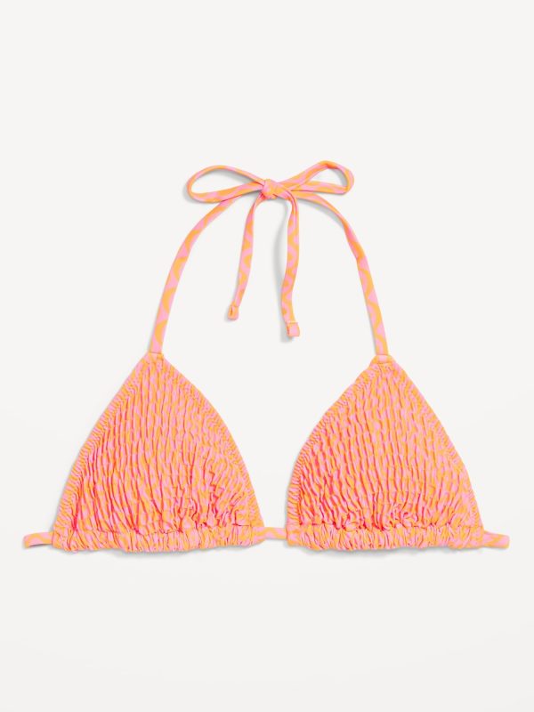 Textured Triangle String Bikini Swim Top: tie-neck halter straps, removable pads, shirred detail, #403813