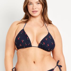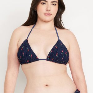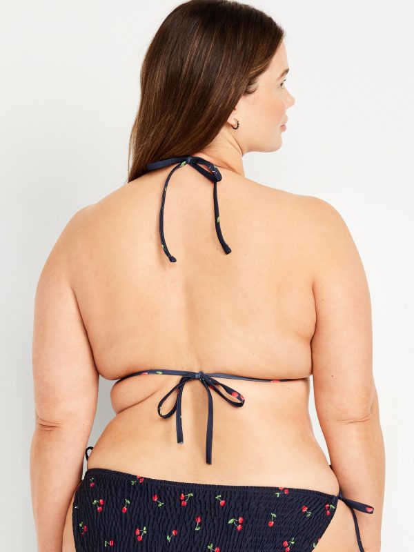 Textured Triangle String Bikini Swim Top: tie-neck halter straps, removable pads, shirred detail, #403813