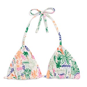 Textured Triangle String Bikini Swim Top: tie-neck halter straps, removable pads, shirred detail, #403813