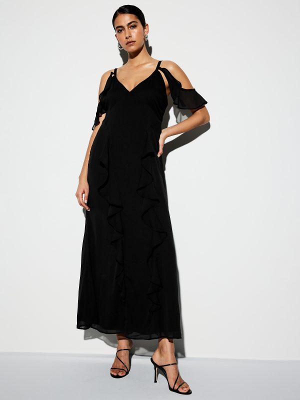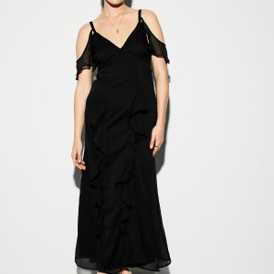 The Occasion by Old Navy Off-Shoulder Ruffle Chiffon Maxi Dress: New! Special dresses and sets, made to make an entrance.deep v-neck, off-shoulder ruffle, ruffle-trim front, center back zipper, princess seams, for parties, proms, graduations, weddings — these looks love an RSVP, #759291