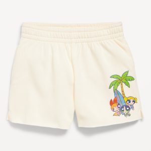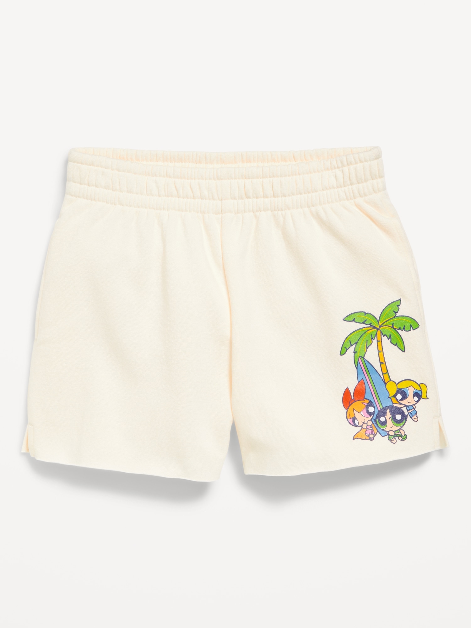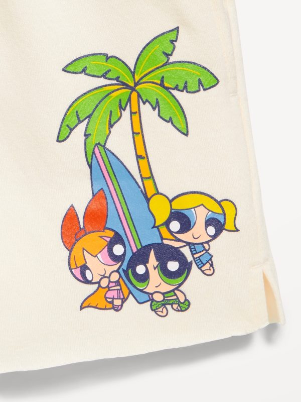 The Powerpuff Girls™ High-Waisted Graphic Shorts for Girls: high rise, elasticized waistband, on-seam welt pockets, cut-off leg cuffs, licensed graphic, Cartoon Network™ and © 2025. All rights reserved., #766330