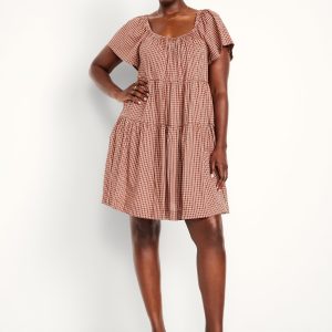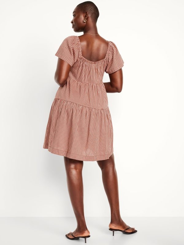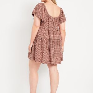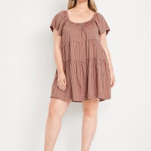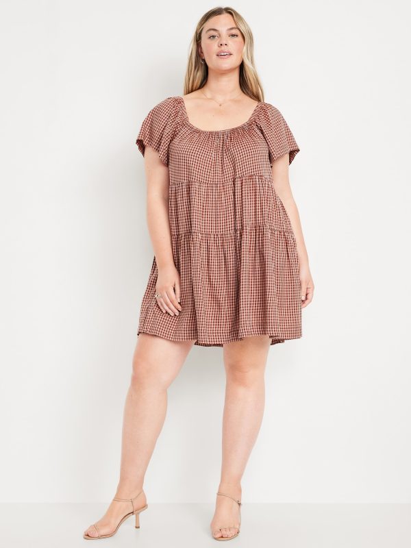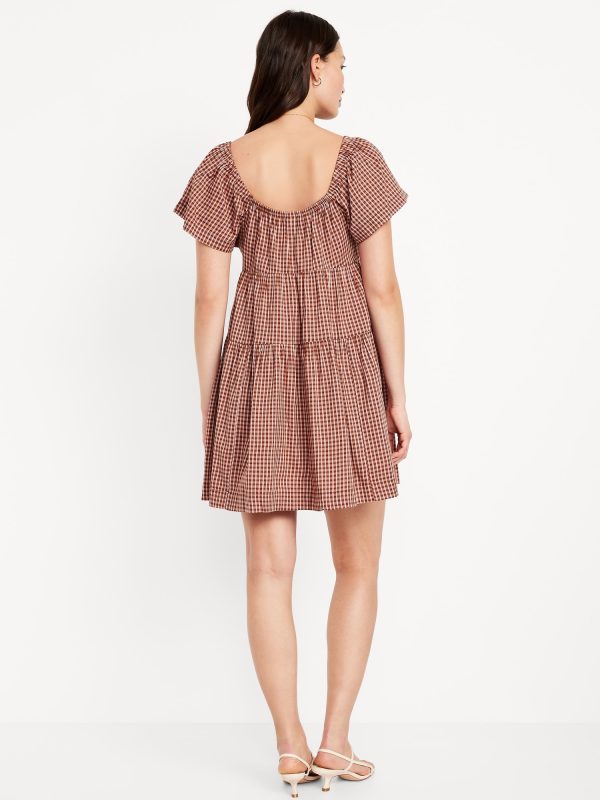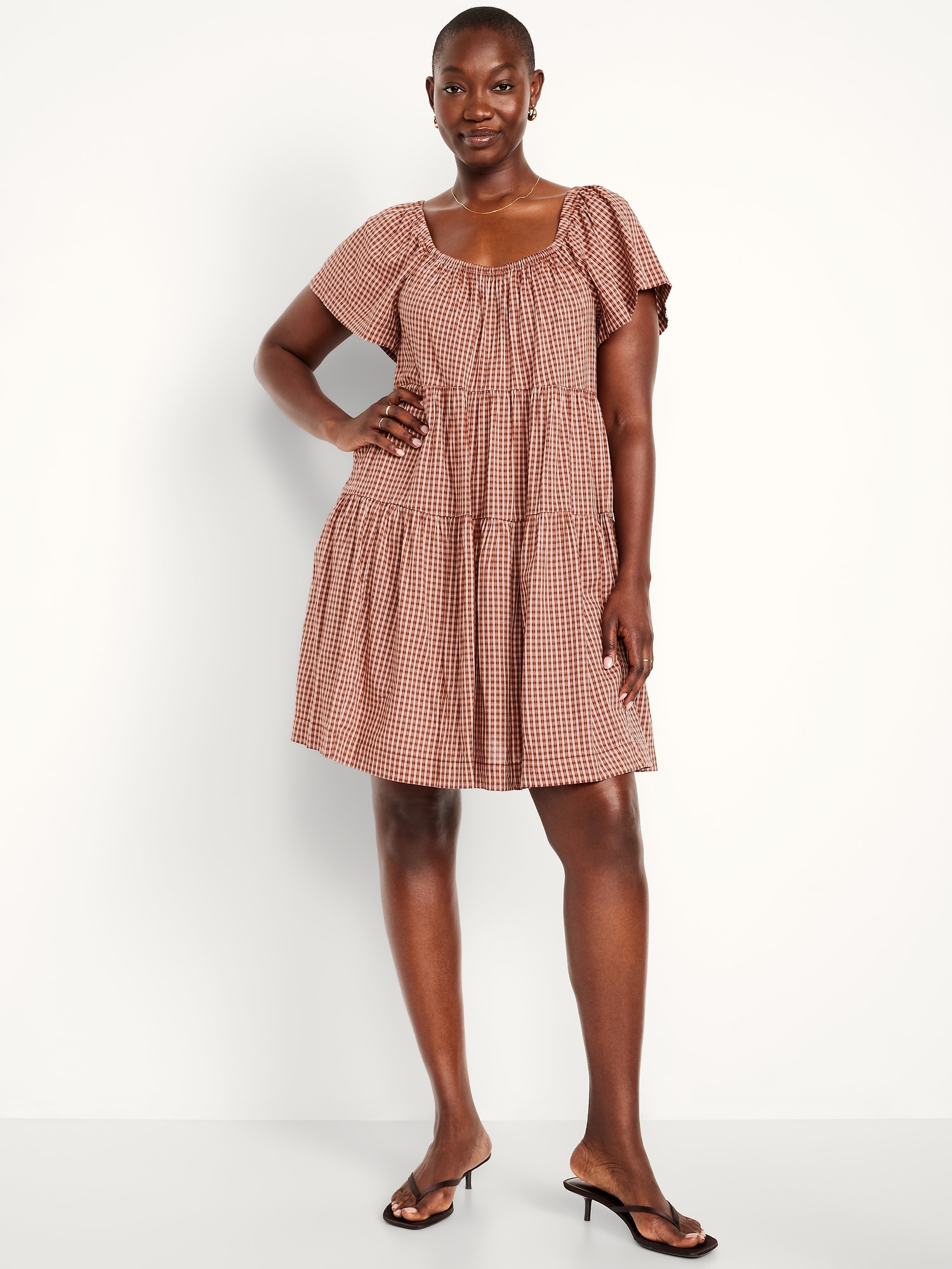 Tiered Mini Swing Dress: square elastic neckline, flutter sleeves, tiered seams, shirred detail, #809629