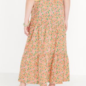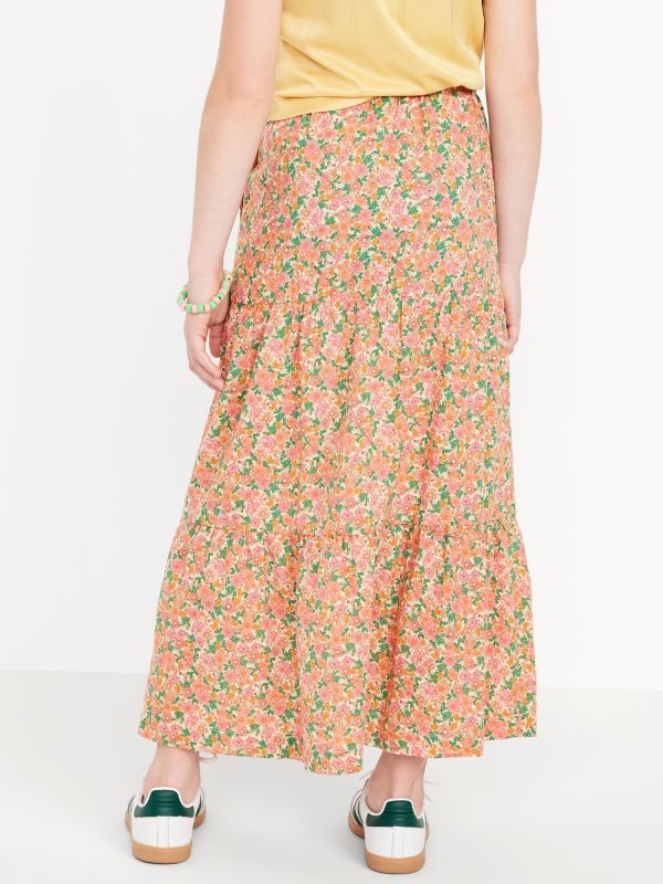 Tiered Swing Midi Skirt for Girls: elasticized waistband, functional drawstring, tiered, on-seam side pockets, all-over print in select colors, #690950