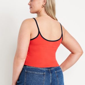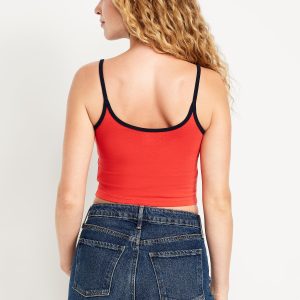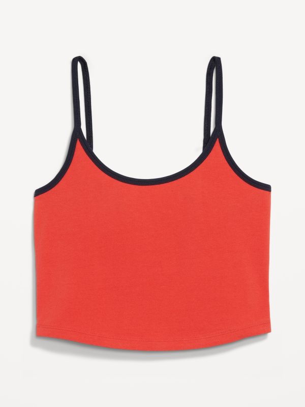 Tipped Jersey Cropped Brami Top: scoop neck, spaghetti straps, tipped trim, #844564