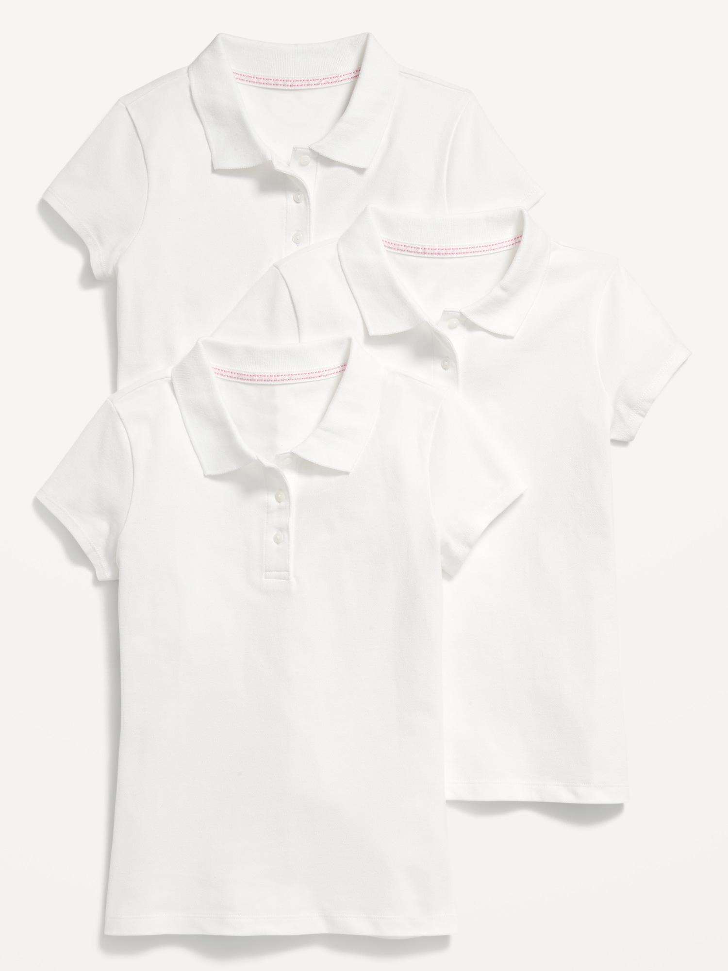 Uniform Pique Polo Shirt 3-Pack for Girls: Uniform Guarantee: Uniforms may be returned for a full refund with the original receipt for 365 days from the date of purchase.pack includes 3 school uniform polo shirts, rib-knit collar, short-sleeves, three-button placket, vented sides at hem, online exclusive, #658184