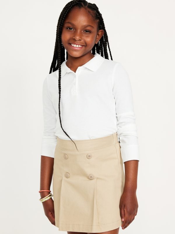Uniform Pique Polo Shirt for Girls: Uniform Guarantee: Uniforms may be returned for a full refund with the original receipt for 365 days from the date of purchase.rib-knit collar, long sleeves, three-button placket, vented sides at hem, online exclusive, #581569