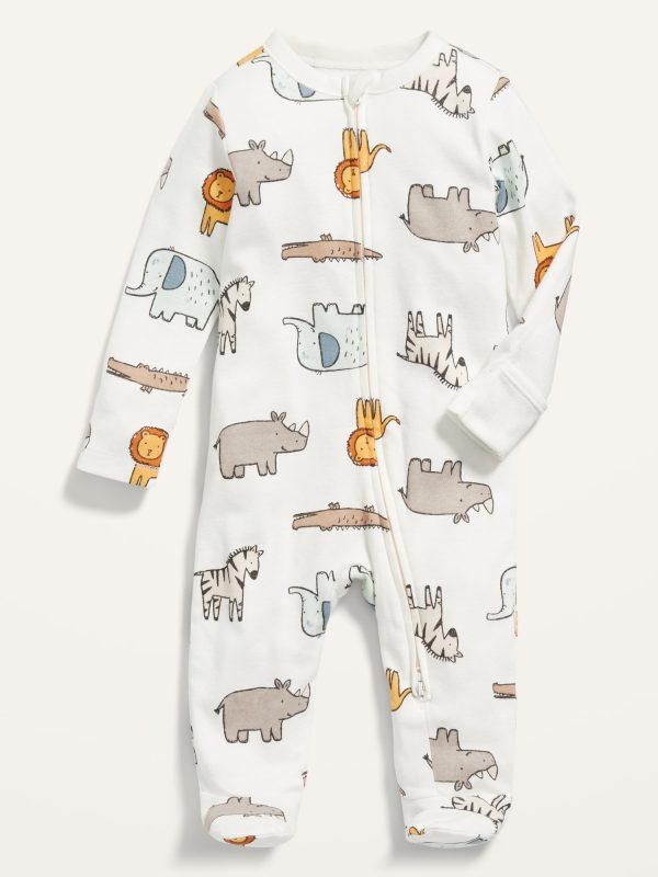 Unisex Animal-Print 2-Way-Zip Sleep & Play Footed One-Piece for Baby