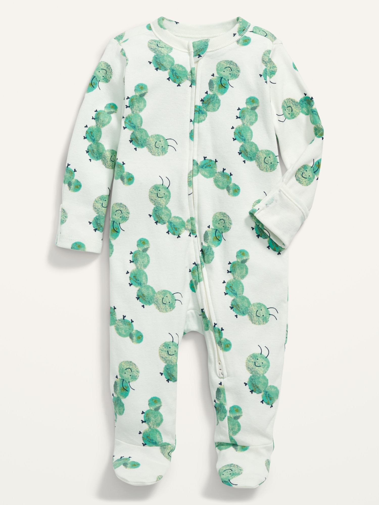 Unisex Caterpillar Print Sleep & Play 2-Way Zip Footed One-Piece for Baby