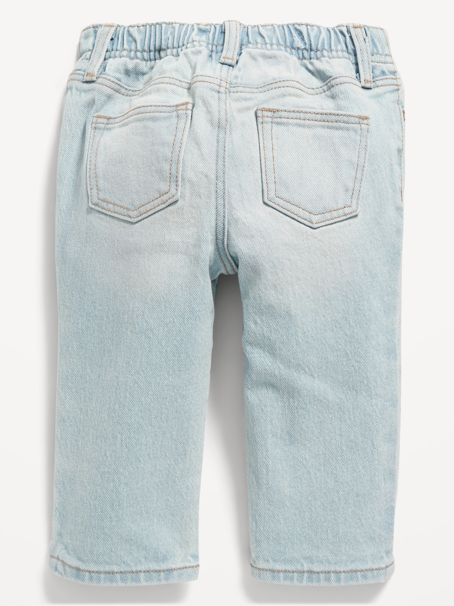 Unisex Loose Jeans for Baby: Comfortable elasticized waistband with functional snap-close front and built-in belt loops., Faux fly., Decorative scoop and coin faux pockets at front; patch pockets at back., Soft, durable cotton denim, with a comfortable stretch., These jeans are made with 11% recycled polyester and 5% recycled cotton. Less waste in the world??, #530019
