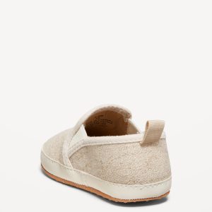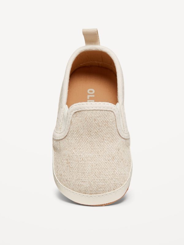 Unisex Slip-On Sneakers for Baby: linen-blend or faux-suede upper, webbed goring at sides, cushioned foot bed, contrasting midsole, gripper dots at outsole, pull tab at heel, #688499