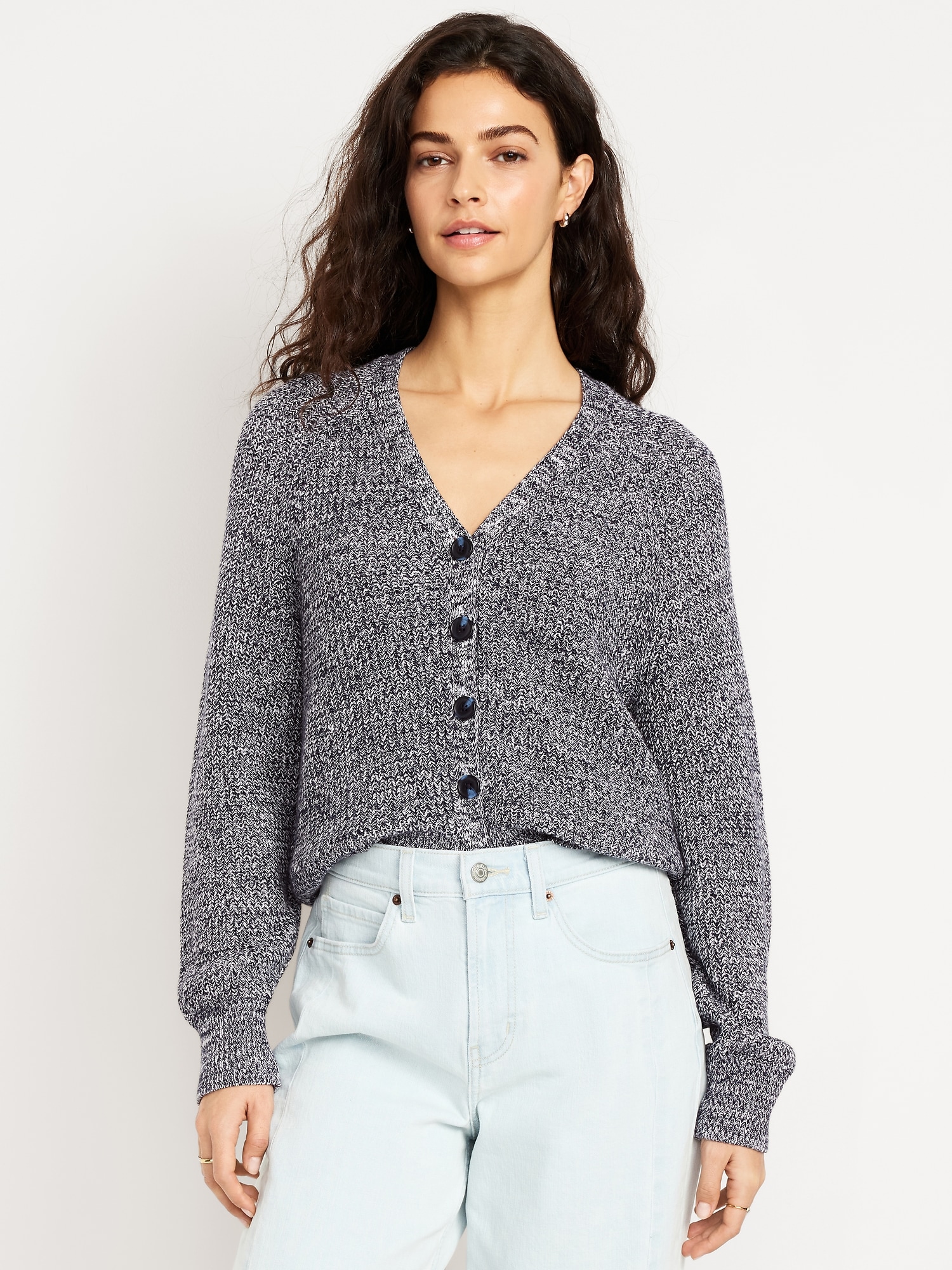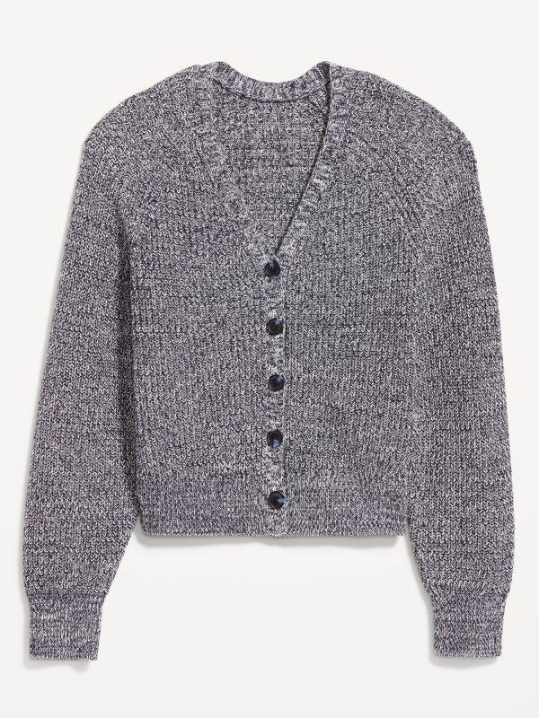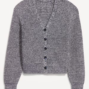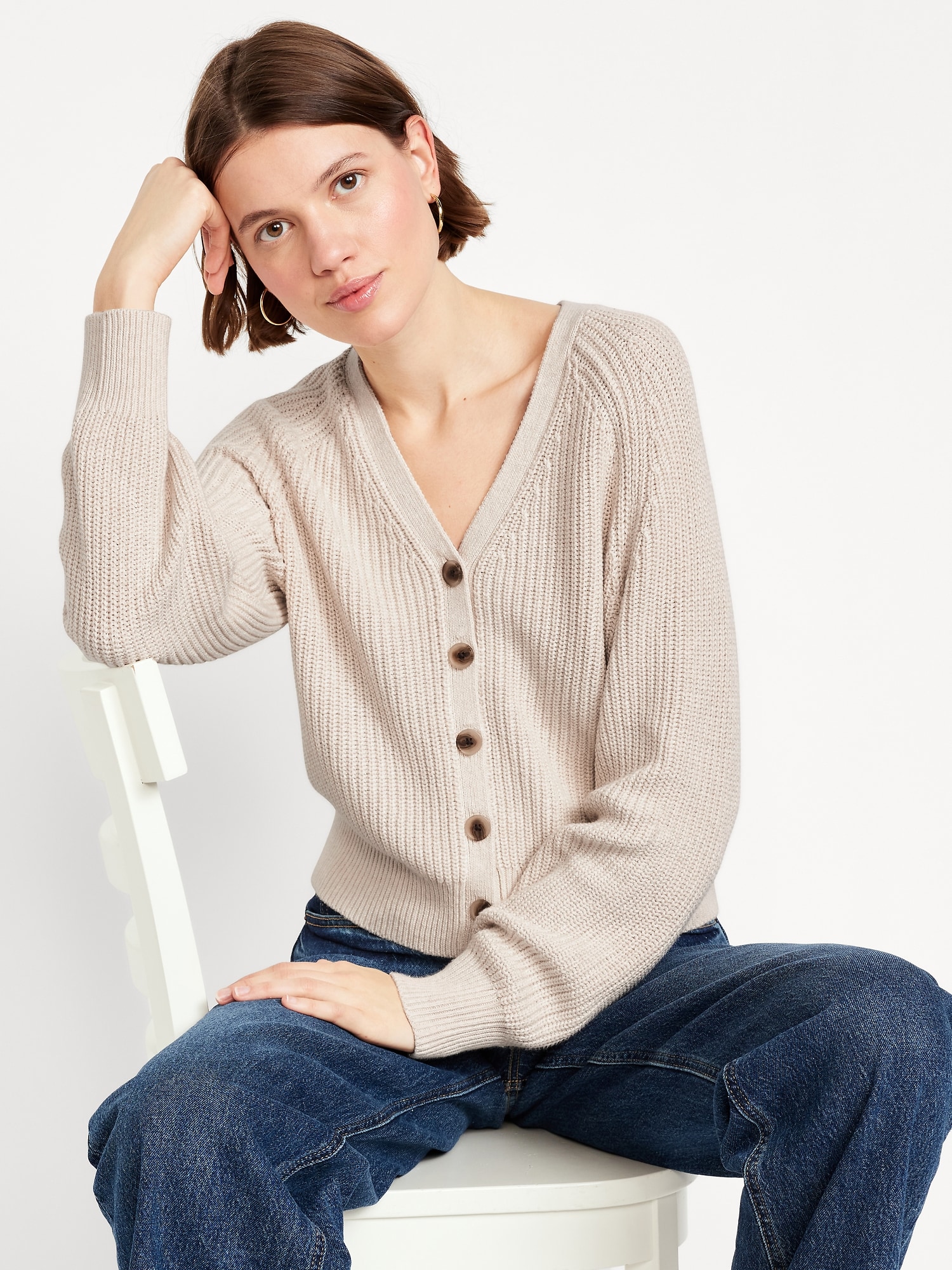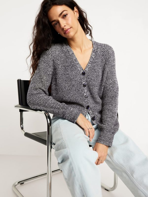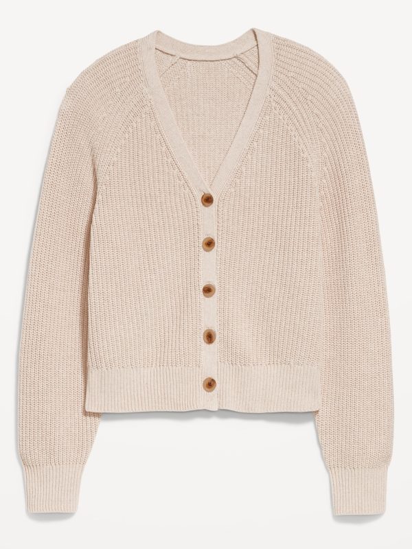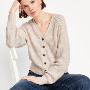 V-Neck Shaker-Stitch Cardigan Sweater: v-neck, long raglan sleeves, five-button front, #664166