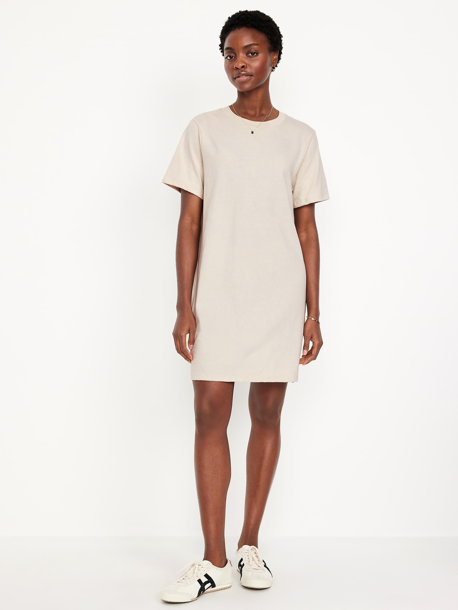 Vintage Crew-Neck Mini T-Shirt Dress: A super relaxed fit with lived-in feels.rib-knit crew neck, short sleeves, striped print, #705238