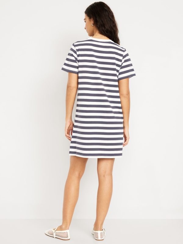 Vintage Crew-Neck Mini T-Shirt Dress: A super relaxed fit with lived-in feels.rib-knit crew neck, short sleeves, striped print, #705238