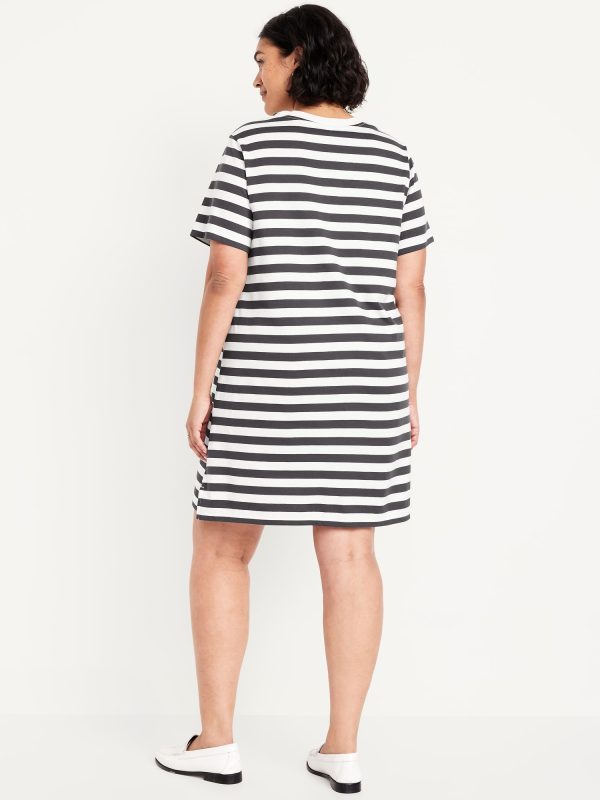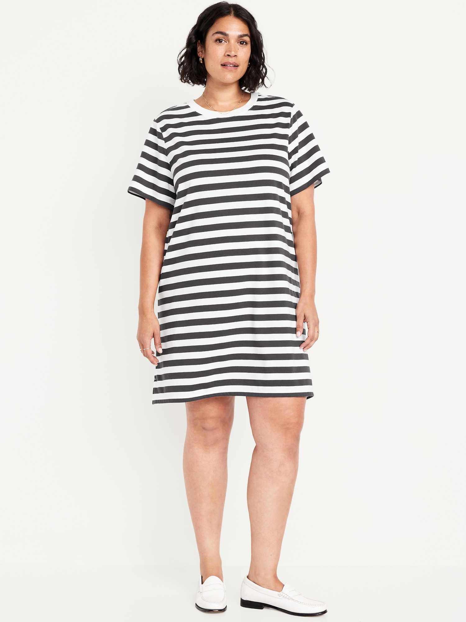 Vintage Crew-Neck Mini T-Shirt Dress: A super relaxed fit with lived-in feels.rib-knit crew neck, short sleeves, striped print, #705238