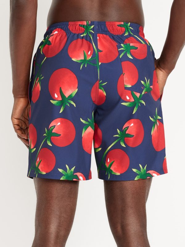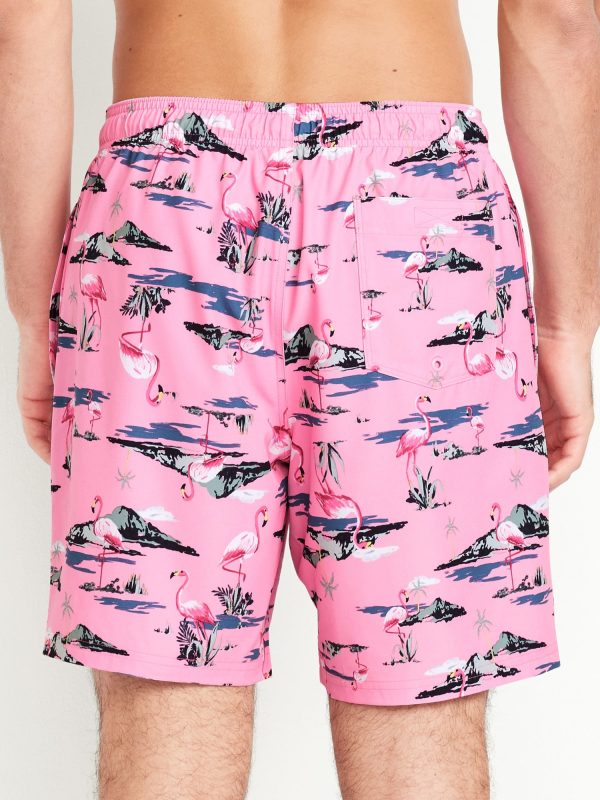 Washed Swim Trunks — 7-inch inseam: elastic-drawstring waistband, on-seam pockets, back patch pocket with grommet drain, built-in mesh briefs, pull-on style, #766290