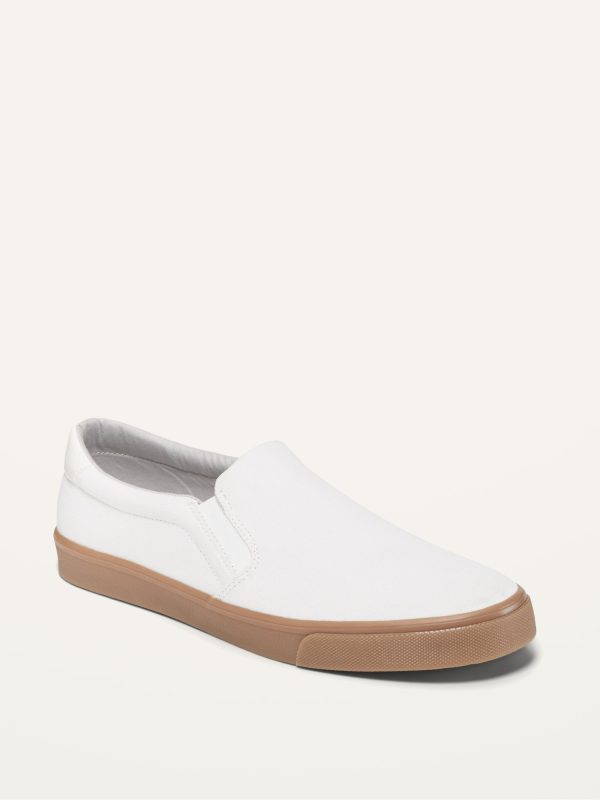Water-Repellent Canvas Slip-On Sneakers: Soft, durable canvas upper, with webbed-elastic side goring., Cushioned insoles made with memory foam. Like walking on fluffy little clouds., Contrasting thermoplastic rubber midsole and textured outsole., These sneakers are water- and stain-repellent. Take that, rain and dirt., Easy slip-on style., #883622