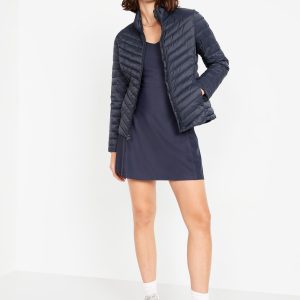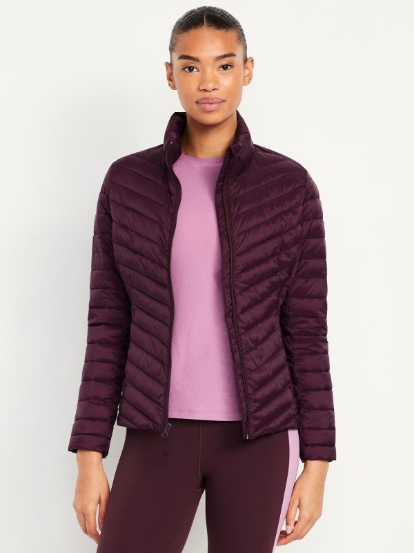 Water-Resistant Narrow-Channel Puffer Jacket: mock neck, long sleeves with elastic cuffs, full-zip front with zipper guard, on-seam zip pockets, packable, #784476