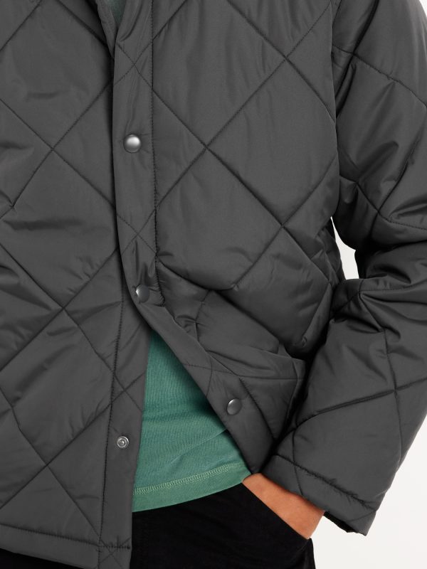 Water-Resistant Quilted Jacket: spread collar, long sleeves, snap front, side-seam pockets, #800294