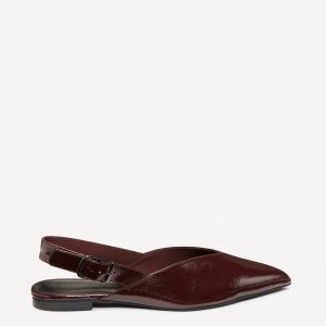 Wide Strap Slingback Flats: pointed toe, V-cut, buckle fastening at ankle, open heel, firm foot bed, textured outsole, #750760