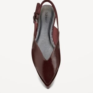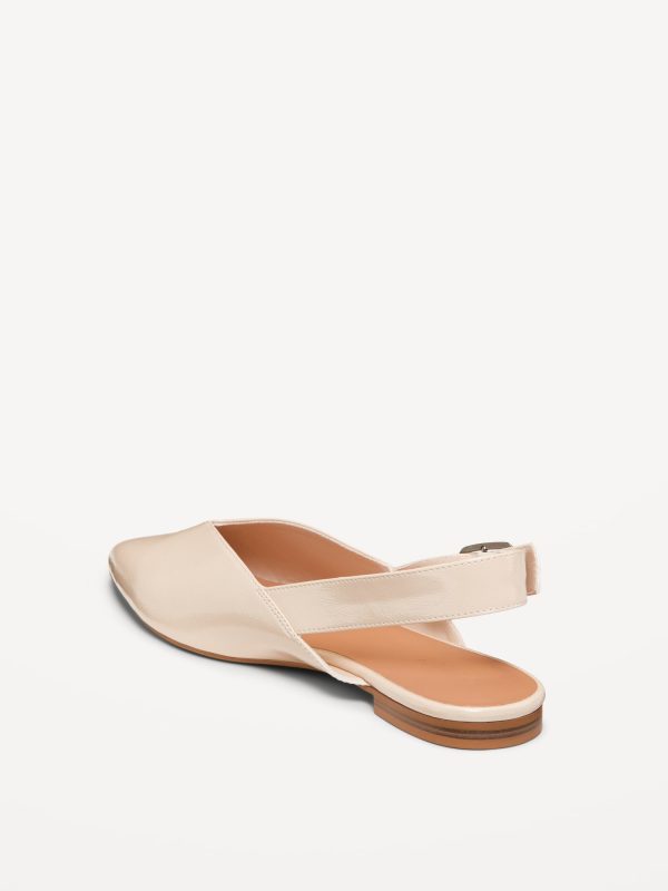 Wide Strap Slingback Flats: pointed toe, V-cut, buckle fastening at ankle, open heel, firm foot bed, textured outsole, #750760