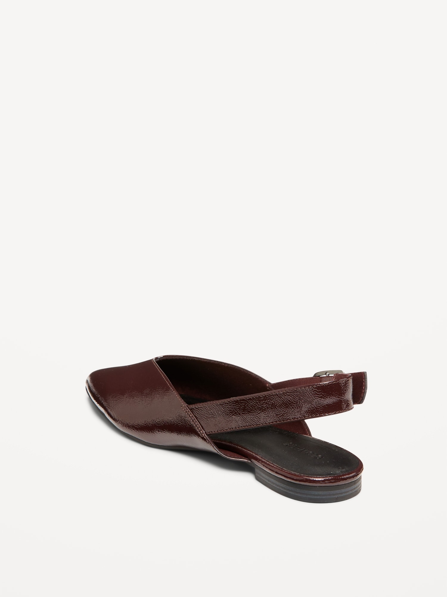 Wide Strap Slingback Flats: pointed toe, V-cut, buckle fastening at ankle, open heel, firm foot bed, textured outsole, #750760