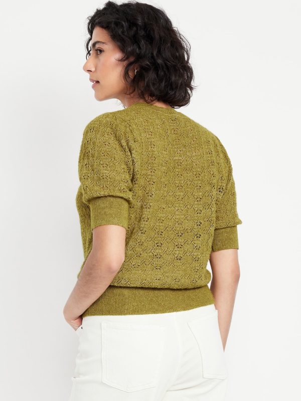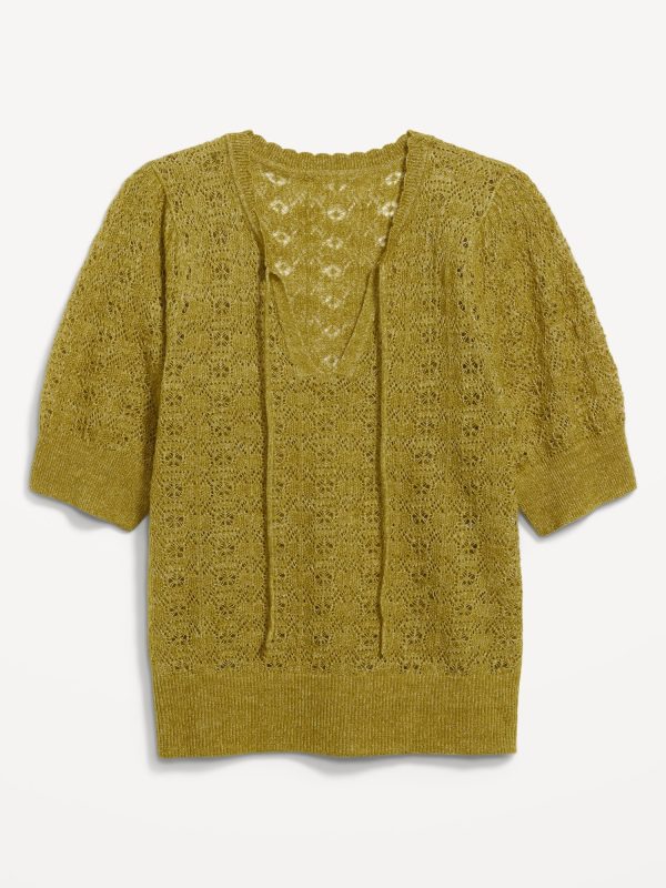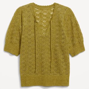 Wool-Blend Puff-Sleeve Tie-Neck Sweater